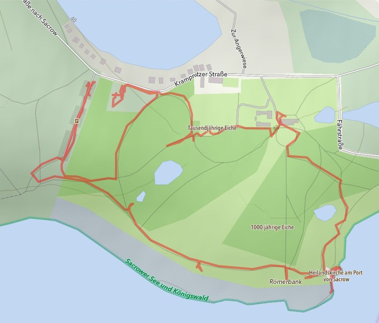 Heute geht es nach Sacrow, das Fontane recht stiefmütterlich lediglich mit einer Abschrift einer Beschreibung des Landpastors aus dem 18 Jhd. bedenkt. Dennoch machen wir einen Spaziergang durch den Park und erkunden Schloss und Heilandskirche.
