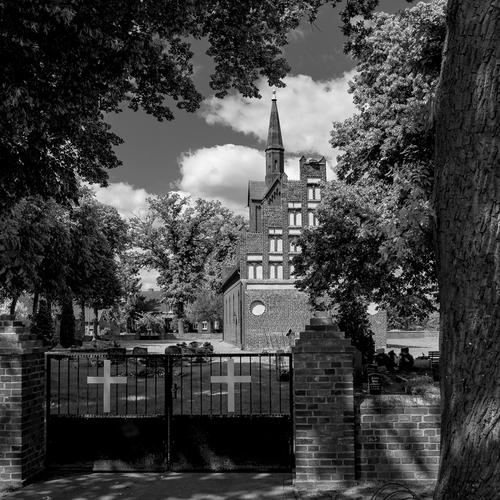 Bei unserer Fahrt durch das Dorf ergibt sich nur ein Bild der Rückseite der Kirche.