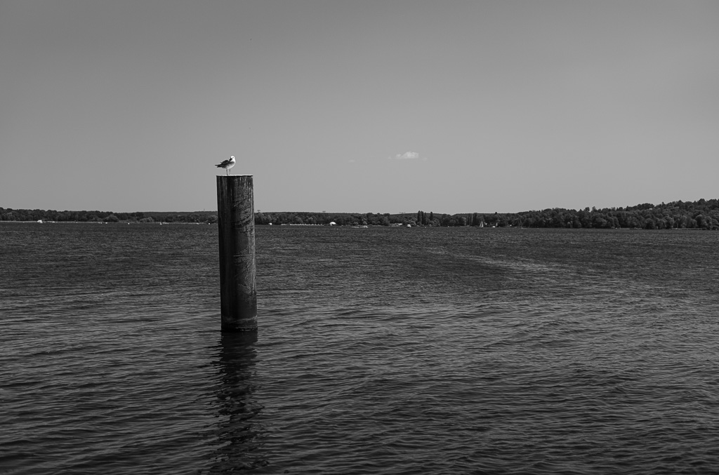und unser Auge, zunächst ausruhend auf dem in Mittelhöhe gelegenen, erlenumstandenen Parksee, steigt nunmehr erst auf die unterste Treppenstufe nieder – auf die breite Wasserfläche des Schwielow.