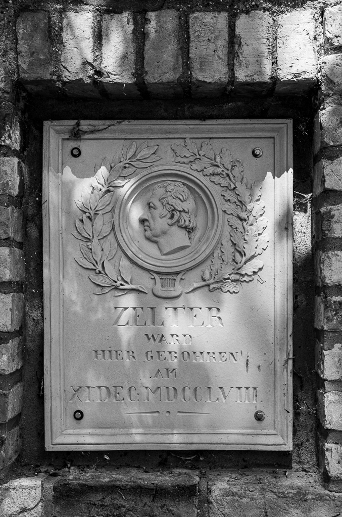 Aber aus dem Weinlaub hervor schimmerte eine weiße Tafel mit der Inschrift: »Hier ward Zelter geboren am II. Dec. 1758.«
