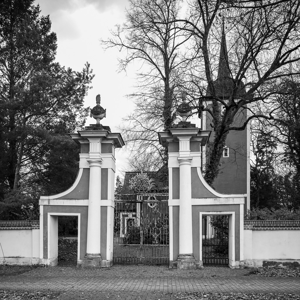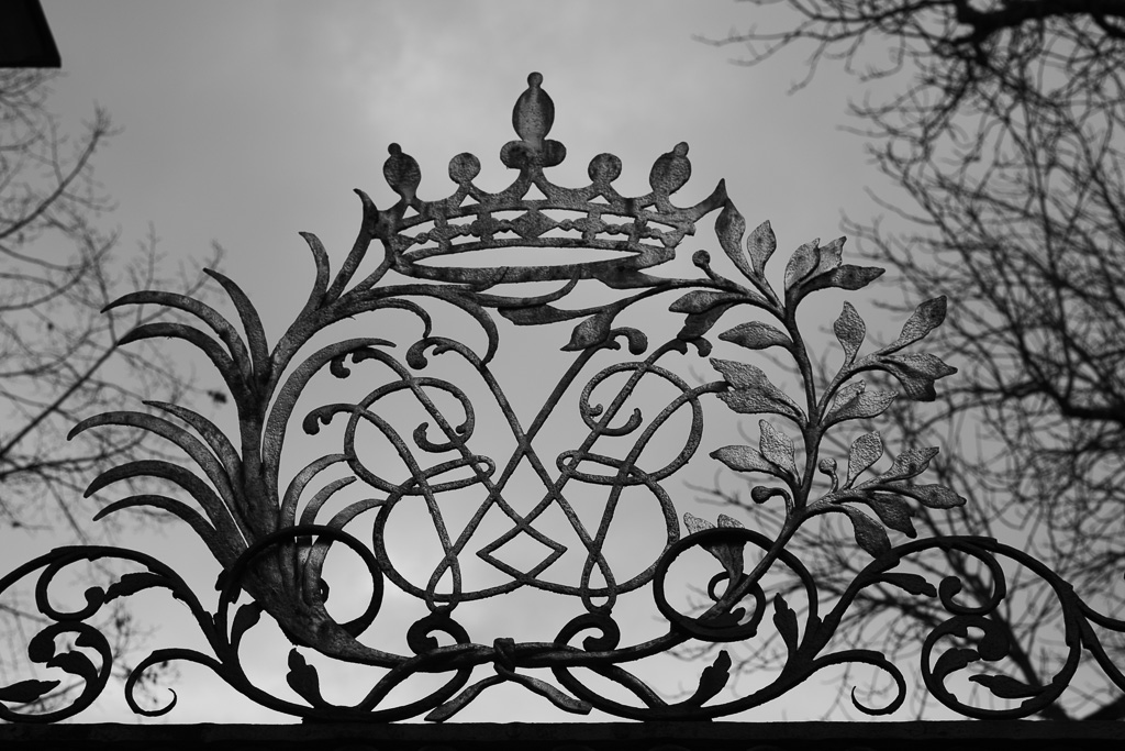 Alsbald hielten wir vor dem Kirchhofsportal, einem schmiedeeisernen Gittertor, das an höchster Stelle zwei in Erz getriebene Lorbeerzweige und inmitten derselben die vergoldeten Buchstaben E. v. W. (Ernst von Weiler) zeigte.