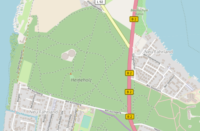 Eine kaum minder interessante Wegstrecke bildet das Gehölz, in das die Fahrlander Straße, unmittelbar nach Passierung der Brücke, einmündet. Dies Wäldchen führt den Namen des »Heinenholzes«