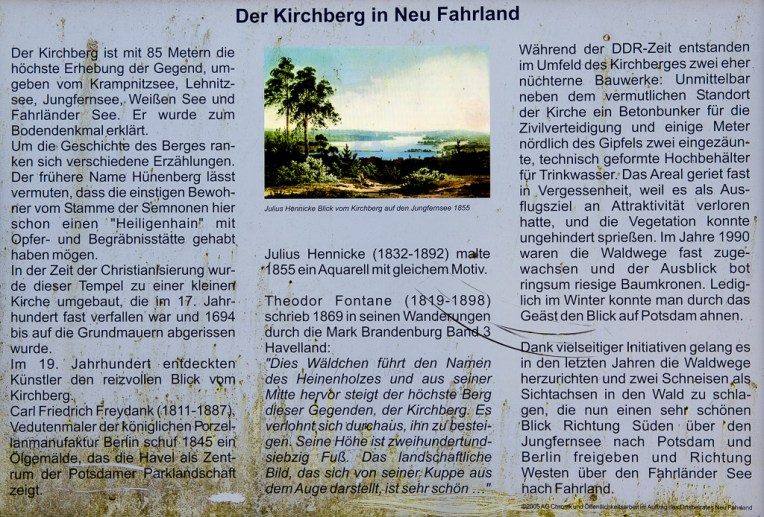 Dank lokaler Initiativen kann der Besucher heute die Aussicht sowohl in Richtung Fahrlander See als auch Jungfernsee und Potsdam genießen.