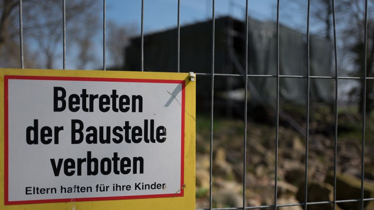 Baustellentafel mit Eindruck des Japanischen Häuschens