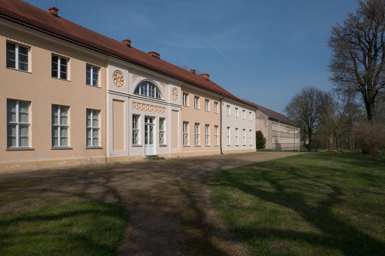 Front des Schlosses paretz mit Rondell und dem heutigen Empfangspavillion