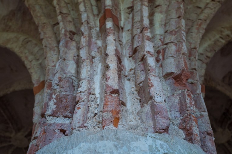 Zwei dieser Pfeiler sind rund, der dritte (mittelste) vier- oder sechseckig.