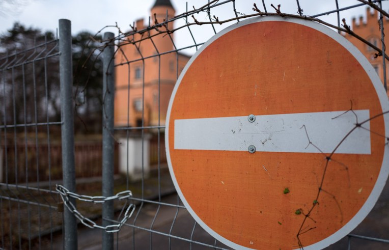 Der Eingang sieht ein wenig danach aus, als wenn hier noch gestern geöffnet war. Der für den Besuch der Kirche ohnehin eingeplante zweite Besuch in Gusow bringt uns eventuell die Gelegenheit zu erfahren, wieso das Schloss geschlossen ist.
