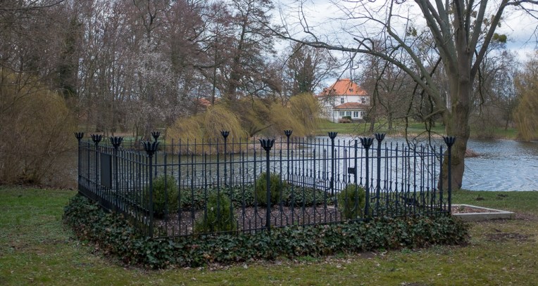 Jetzt allerdings mit Eisenzaun und ohne Grabhügel.