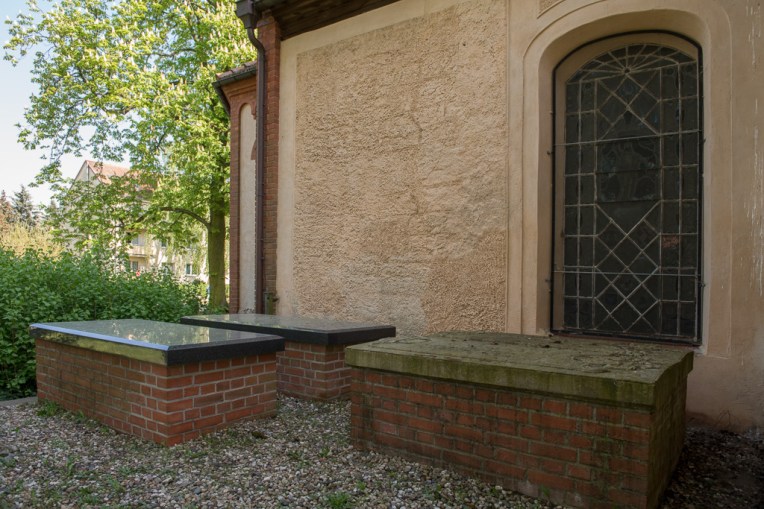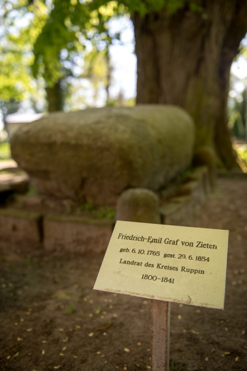 Der Raum reichte hin für vier Gräber, und hier ruhen denn auch die beiden Eltern des alten Zieten, seine zweite Gemahlin (eine geborene von Platen) und er selbst. Das Äußere der vier Gräber ist wenig von einander verschieden. Ein Unterbau von Backstein erhebt sich zwei Fuß hoch über dem Rasen, auf welchem Ziegelfundamente und dann die Sandsteinplatte ruht.