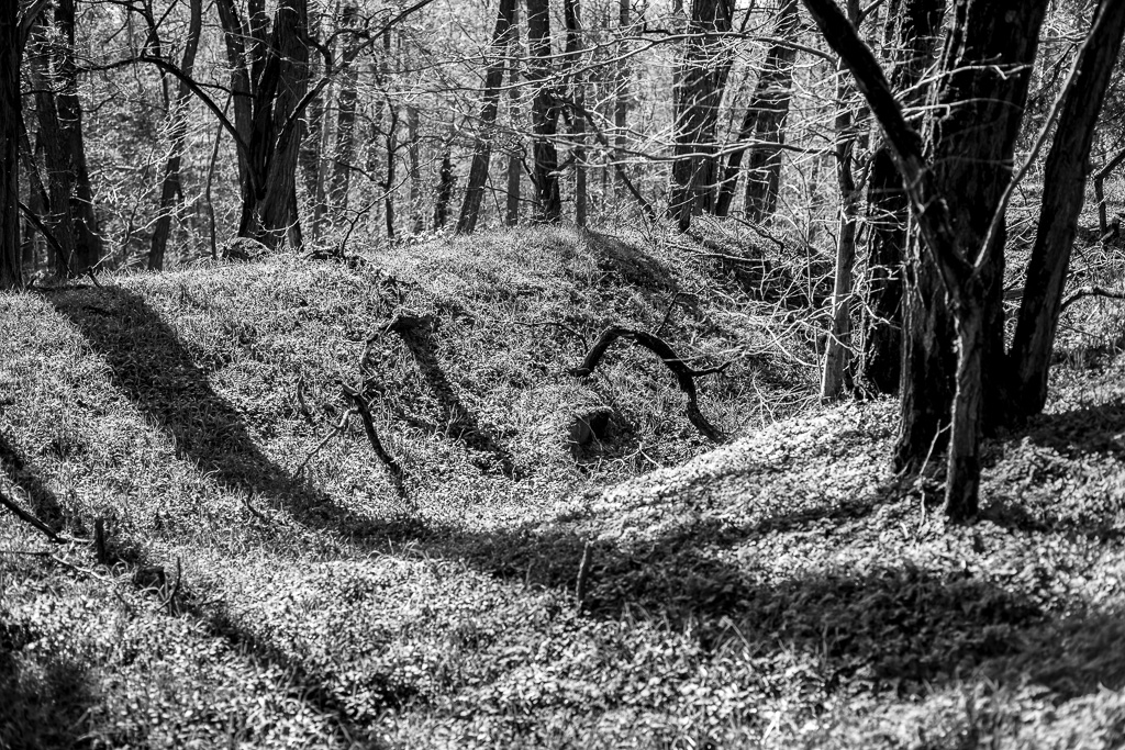 Heute ist davon nichts mehr zu sehen. In der direkt angrenzenden Friedenstadt Glau war bis 89 die Rote Armee zuhause und hat die Wälder in der Umgebung zu verschiedenen Trainingszwecken genutzt. Die Überreste, die wir finden, deuten eher auf einen Ursprung im 20.Jahrhundert hin.