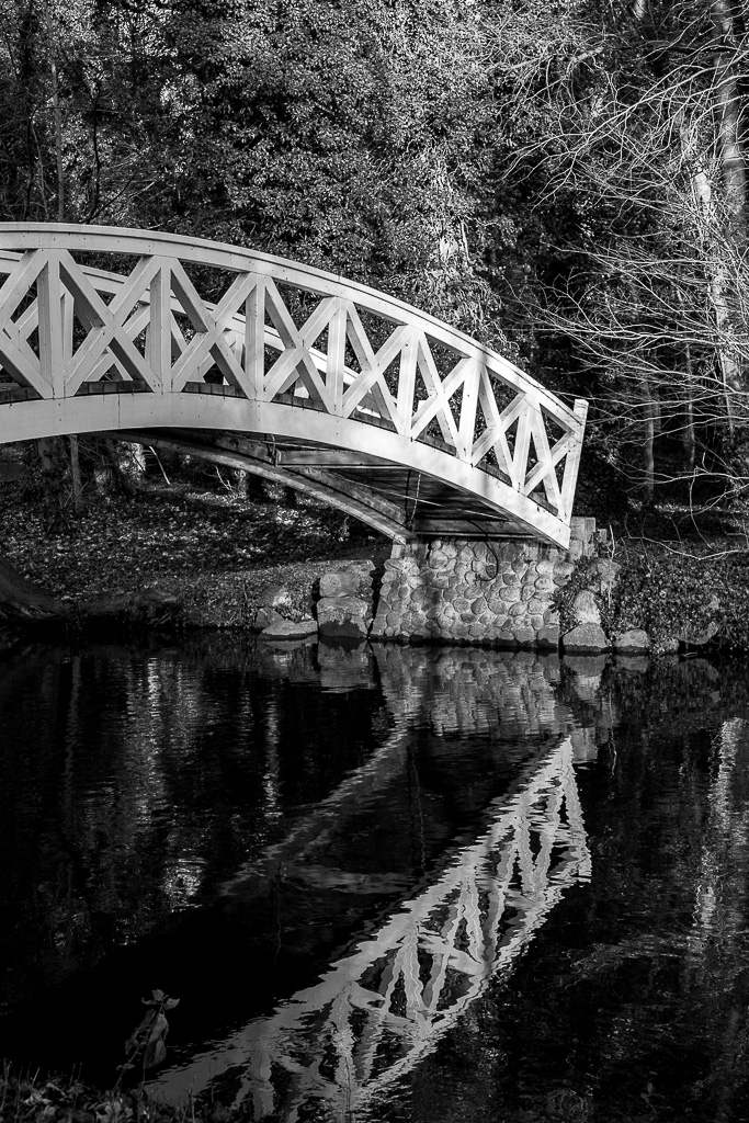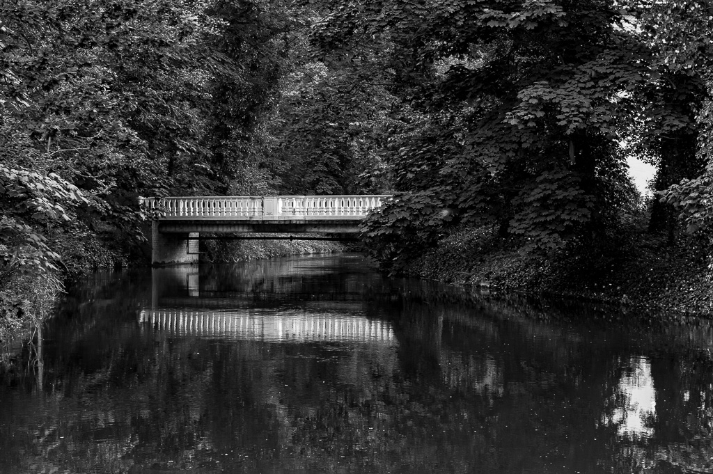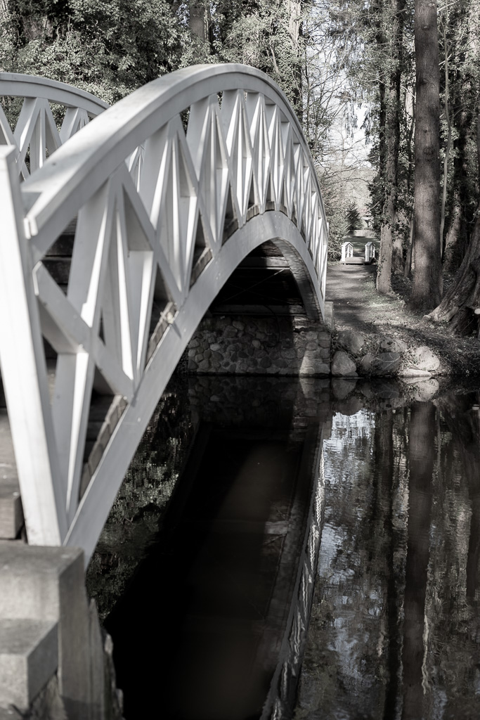 Die Nieplitz zieht sich durch den Park und kann mittels einer Fußgängerbrücke